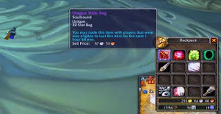Well, we have Sartharion’s skin bag. A firestone for some critting. A soul stone which I did not have to use from the smooth run. A rune from some Icecrown quest I did not bother finishing. A lance for running H ToC, trash cloth worth 50 silver, some gears from some quest in Storm Peaks I am not bothering to finish anytime soon, Giant Eggs from doing the “collect 30 boomkin bloods” for the Warlock mount quest, and some torch from….somewhere..probably a quest I am not going to finish anytime soon.