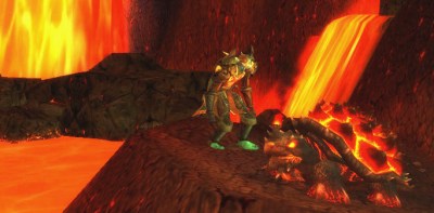 I tabbed out and googled something along the lines of “wow flaming turtle pet”, and this awesome looking turtle was called Terrorpene (Fear Penis), and spawns in the fiery area of Mt. Hyjal.